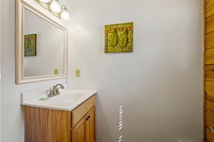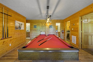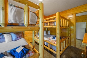 From the mid-level, take another stairway down to the lower level, which is every kid's dream! This level is where you'll find the theater room and three arcade games that will keep the kids entertained for hours. There are also 2 bedrooms on this level; 1 bedroom with a king size bed and 1 bedroom with 2 queen-over-queen bunk beds.