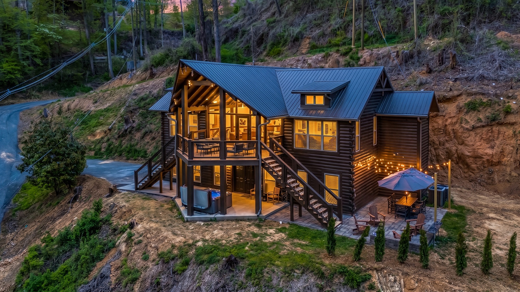 3 Bedrooms • 3 Bathrooms 3 Baths • Sleeps 6-12Sleeps 12! 2,700 sq ft luxury log cabin with indoor pool, hot tub, outdoor entertainment area, less than 1 mile from the Parkway in Gatlinburg.